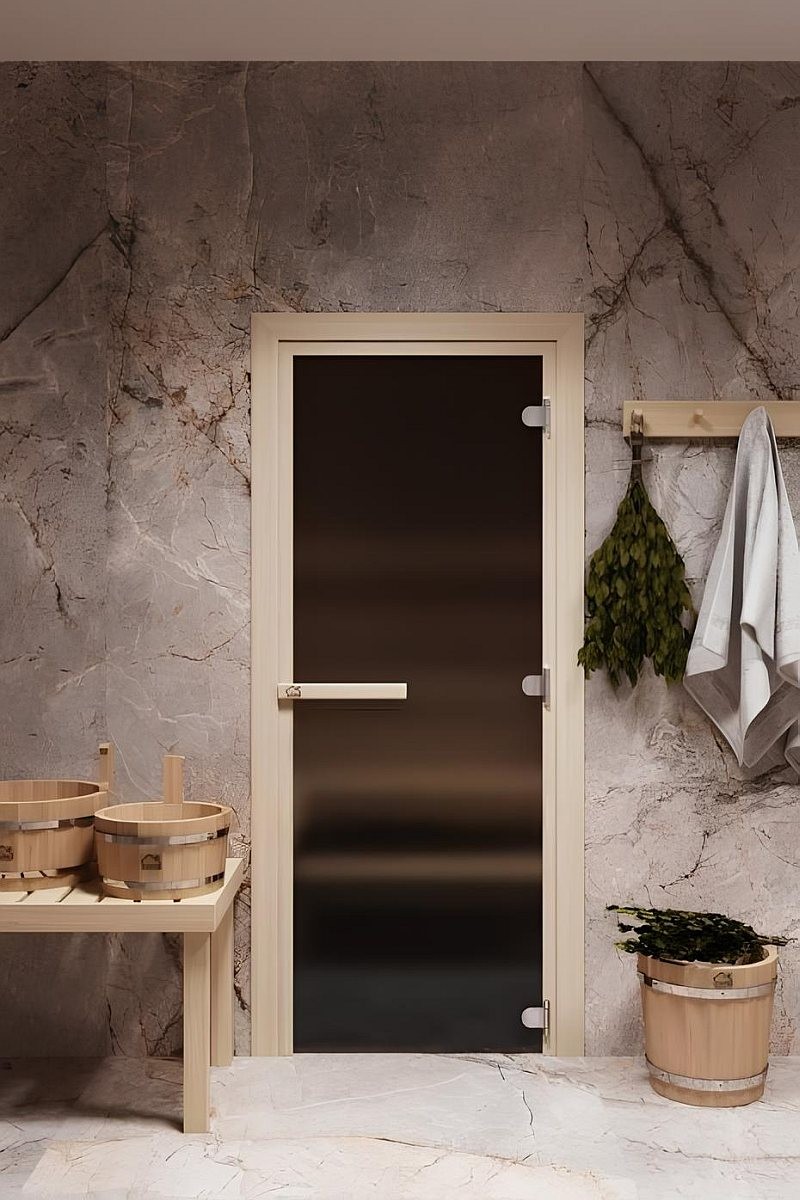 Дверь для бани Cooper LITE 1900х700 мм со стеклом, бронза матовая, 3 петли, толщина стекла 8 мм, материал коробки осина