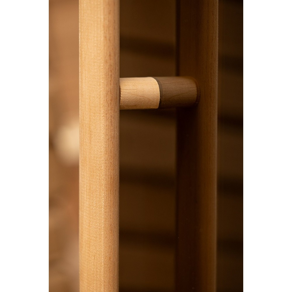 Ольха известна своей устойчивостью к влаге и температурным перепадам, что делает её идеальной основой для дверей в условиях повышенной влажности и высокой температуры, характерных для бань и саун.
