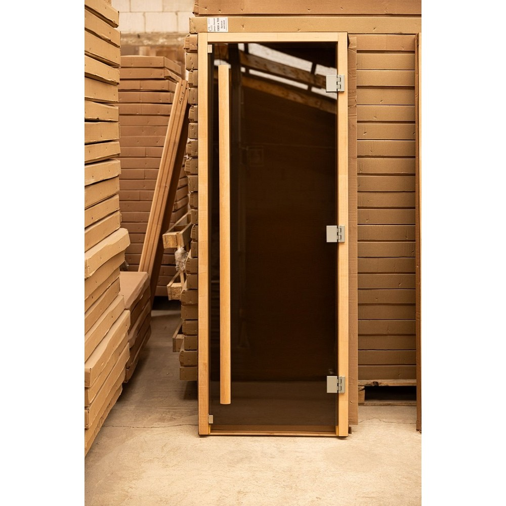 Дверь для бани COOPER PREMIUM 1900x715 мм со стеклом, бронза матовая, 3 петли, толщина стекла 8 мм, материал коробки ольха