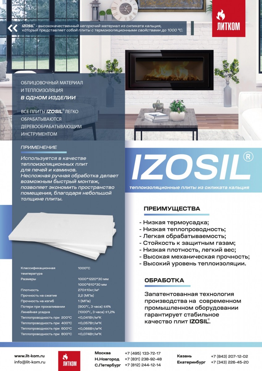 IZOSIL – высококачественный негорючий материал из силиката кальция, который представляет собой плиты с термоизоляционными свойствами до 10000С.