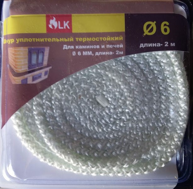 Шнур термостойкий (2 м/п) уплотнительный 6 мм - используется для герметизации закрытия дверец печей и каминов, а также для уплотнения соединений дымоходной системы при наличии больших зазоров или трещин (в случае, когда применение термостойкого герметика не сможет решить проблему). Уплотняет и герметизирует.